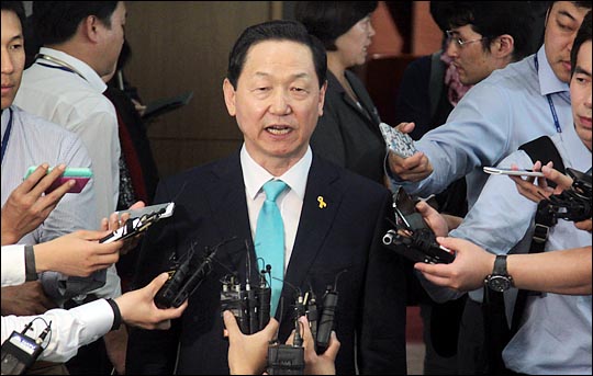 김상곤 새정치민주연합 혁신위원장이 지난 16일 국회 의원회관에서 열린 중앙위원회에서 혁신안이 주류와 비주류의 난상토론 끝에 만장일치 박수로 통과된 후 기자들의 질문에 답변하고 있다. ⓒ데일리안 박항구 기자