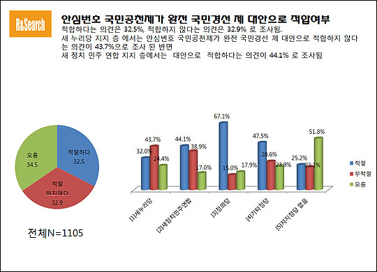 최근 정치권의 최대 논란으로 떠오른 '안심번호 국민공천제'가 완전 국민경선제 대안으로 적합한가에 대해 우리 국민들은 팽팽한 접전을 보인 것으로 나타났다.