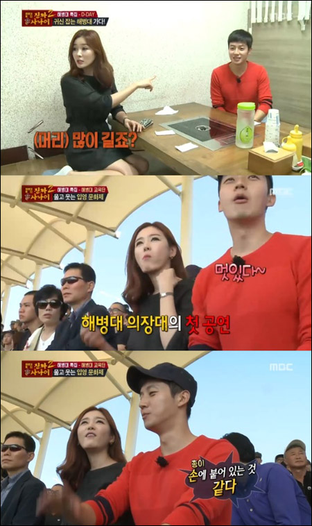 이날 허경환은 공서영과 함께 훈련소에 등장했다. 입소 전 허경환과 함께 점심 식사를 하러 식당에 들른 공서영은 옆에서 밥을 먹고 있는 가족들에게 "머리 많이 길죠?"라고 물으며 허경환의 긴 머리를 지적했다.