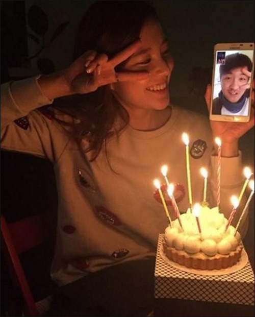 공개된 사진 속 신소연은 케이크에 초를 켜놓고 강민호와 영상통화를 하고 있다. 특히 신소연과 강민호는 서로가 똑같이 손가락으로 브이를 그리고 환하게 웃으며 닭살커플의 면모를 과시했다.