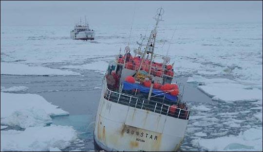 남극해 좌초 썬스타호, 구조작업 중