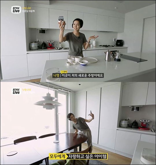 김나영의 주방은 한강이 훤히 보이는 조망을 자랑한다. 집안은 군더더기 없는 순백색 가구로 채워져 있다.