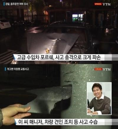 개그맨 이창명이 신호등을 들이받는 사고를 낸 가운데 음주운전 의혹과 관련해 전면 부인했다. YTN 뉴스 캡처