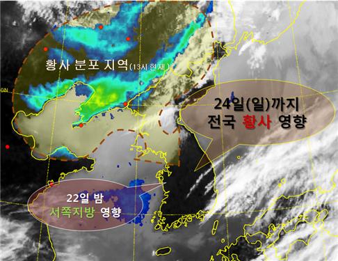 20일부터 몽골과 내몽골고원에서 황사 발원