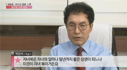 지난 1월 OBS '독특한 연예뉴스'에서는 배용준 박수진 부부의 결혼과 신혼 생활에 대해 언급했다.
