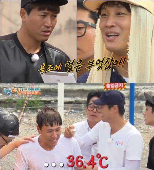지난 11일 방송된 '1박2일'에서는 올 초 인기리에 방송한 KBS2 '태양의 후예' 세트장에 간 멤버들의 모습이 그려졌다. 문제가 된 건 '체온 낮추기' 게임이었다.