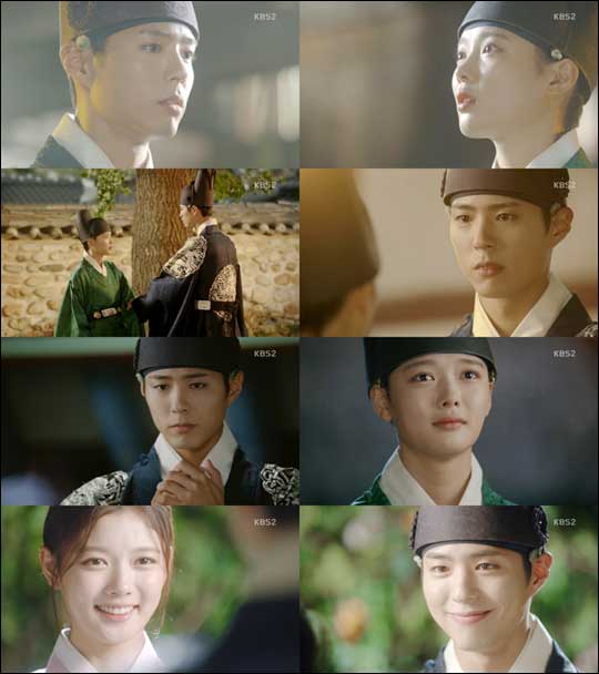 KBS2 월화극 '구르미 그린 달빛' 세자 박보검이 이름을 부르자 사내로 살아왔던 김유정이 여인이 됐다.