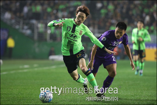 전북 현대와의 ACL 결승 1차전에서 이재성과 공 다툼을 벌이고 있는 이명주. ⓒ 게티이미지