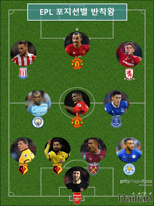 영국의 축구 전문 매체 ‘팀 토크’는 최근 ‘포그바와 이브라히모비치가 EPL 배드보이11에 합류했다’는 기사와 함께 각 포지션별 반칙왕들을 꼽았다. ‘팀 토크’는 ‘후스코어드닷컴’의 자료를 바탕으로 리그 20라운드까지의 선수별 반칙 수 × 옐로카드(레드카드는 ×2)로 징계 점수를 산출했다.