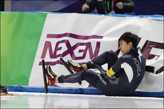 레이스 도중 팀 동료 김민석과 엉켜 넘어져