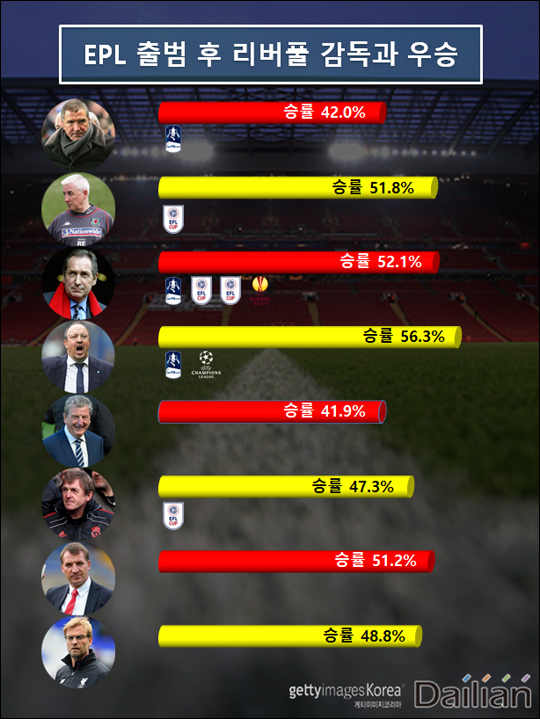 EPL 출범 후 리버풀 감독. ⓒ 데일리안 스포츠