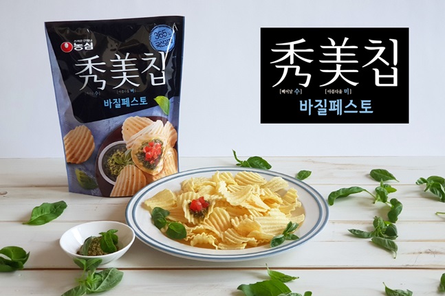 농심 관계자는 “한국인의 입맛에 맞는 국산 수미감자에 젊은 여성이 선호하는 바질페스토를 더한 고급스럽고 이색적인 제품”이라고 설명했다.