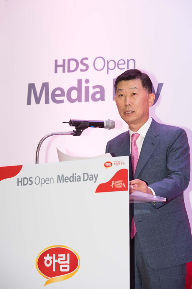 김홍국 하림그룹 회장이 지난해 6월22일 충남 공주시에 열린 '하림펫푸드' 출범 및 펫푸드 전용 공장 '해피댄스스튜디오' 오픈 행사에서 인사말을 하고 있다. ⓒ하림펫푸드
