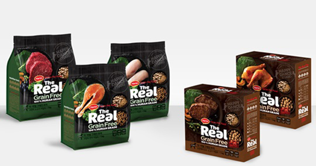 (왼쪽부터)더리얼 그레인프리 크런치 소고기 어덜트, 연어 어덜트, 닭고기 어덜트 더리얼 그레인프리 오븐베이크드 소고기 어덜트, 닭고기 어덜트)ⓒ하림펫푸드