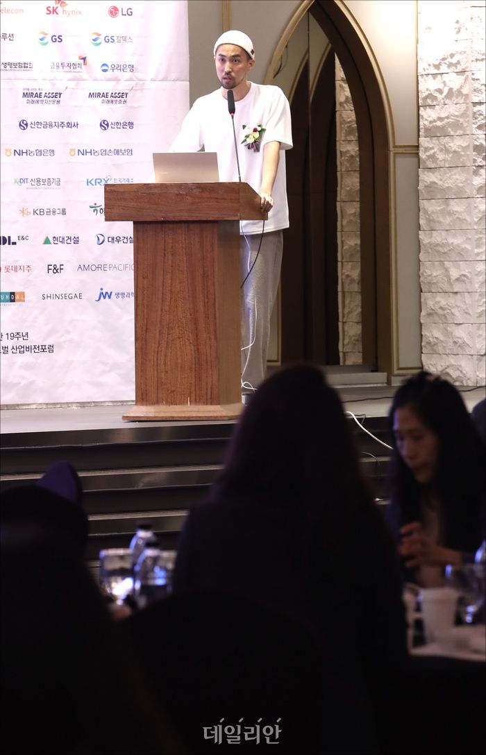 정병익 Nerdystar PD가 20일 오전 서울 여의도 CCMM빌딩 컨벤션홀에서 열린 데일리안 창간 19주년 2023 글로벌 산업비전포럼에서 'AI 창착물 시대의 활용방안'에 대해서 발표하고 있다.