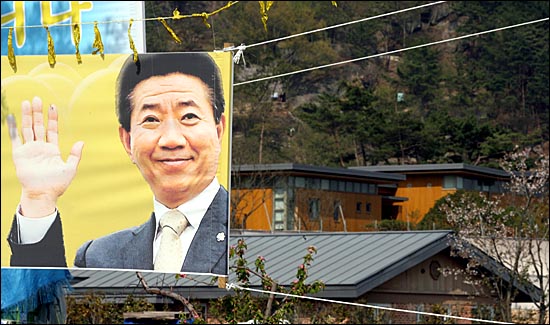 경남 봉하마을에 내걸린 노무현 전 대통령 지지 현수막.