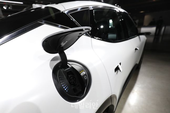 30일 오후 서울 강남구 카페 캠프통에 제네시스 첫 전용 전기차 GV60이 전시돼 있다. GV60는 제네시스가 현대자동차 그룹의 전기차 전용 플랫폼 E-GMP를 기반으로 만든 첫 번째 전기차로 1회 충전 시 주행 거리는 후륜 모델 기준 451km, 가격은 5990만 원(후륜·스탠다드)부터 최고 사양 6975만 원(사륜·퍼포먼스)으로 책정됐다. 국내 계약은 다음달 10월 6일부터다.