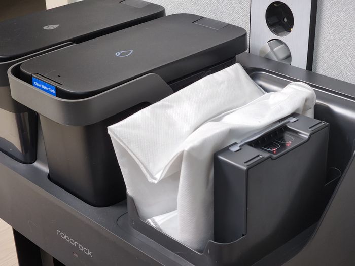 놀라운 점은 물통의 물을 채우기 위해 손으로 꺼낼 필요가 없다. 도크에서 자동으로 물을 보충한다. 또한 로봇청소기의 먼지통에 쌓인 먼지를 자동으로 비워주는 자동 먼지 비움 기능도 있어 최대 7주까지 먼지 통을 비우지 않아도 된다. 실제로 사용하는 일주일간 단 한 번도 먼지 통을 비우지 않았다. 다만 먼지 더스트 백은 따로 세척이 안되고 주기적으로 교환이 필요하다.