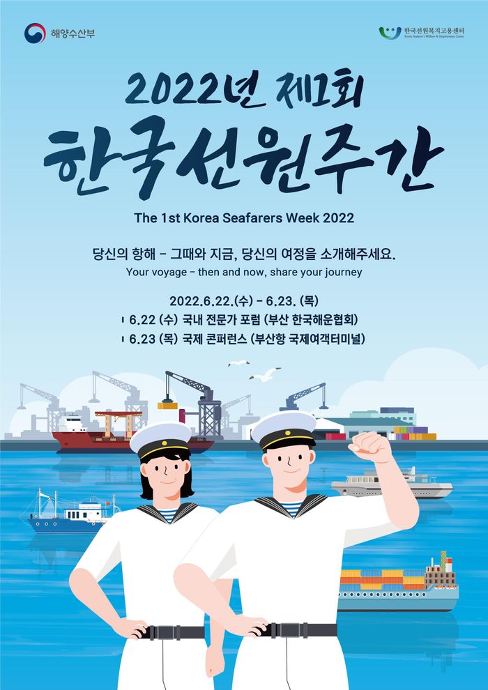 해수부도 ‘세계 선원의 날’을 기념해 처음으로 ‘한국선원주간’ 행사를 통해 22일 국내 전문가 포럼과 23일 한국선원주간 국제콘퍼런스를 부산 국제여객터미널에서 진행한다.