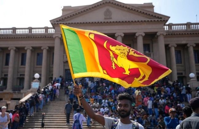 13일(현지시간) 스리랑카 콜롬보의 대통령 관저 앞에서 시위대가 시위하고 있다. ⓒAP/뉴시스