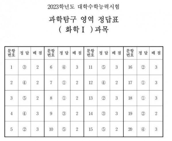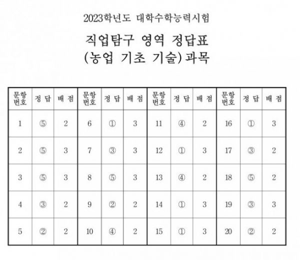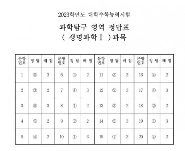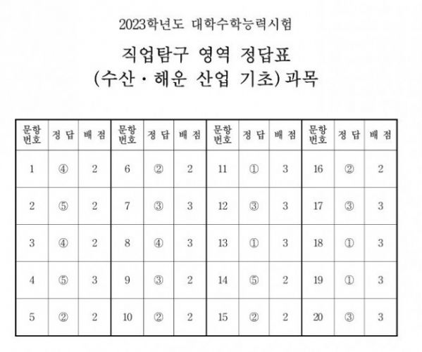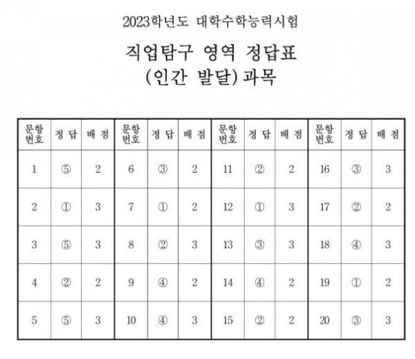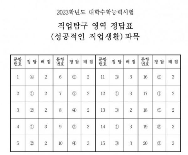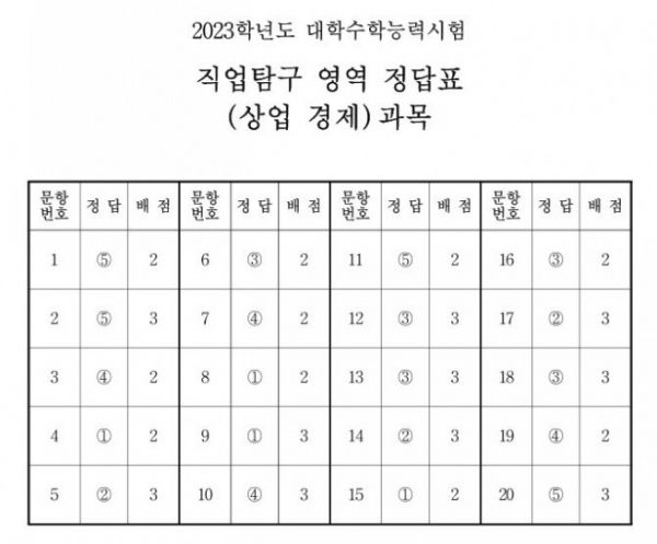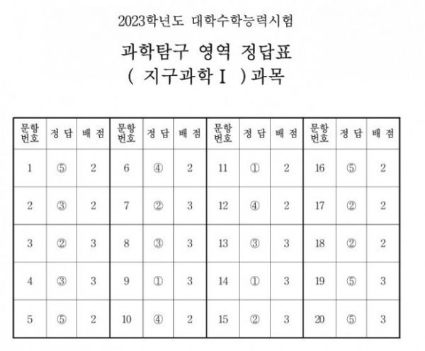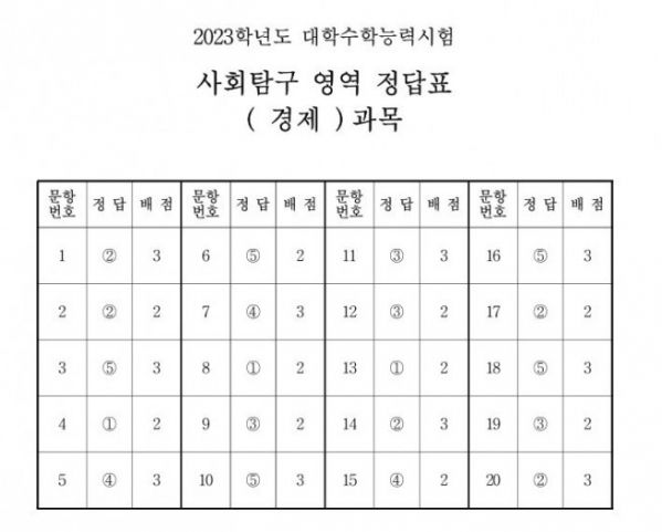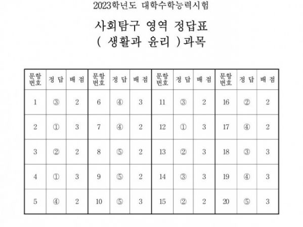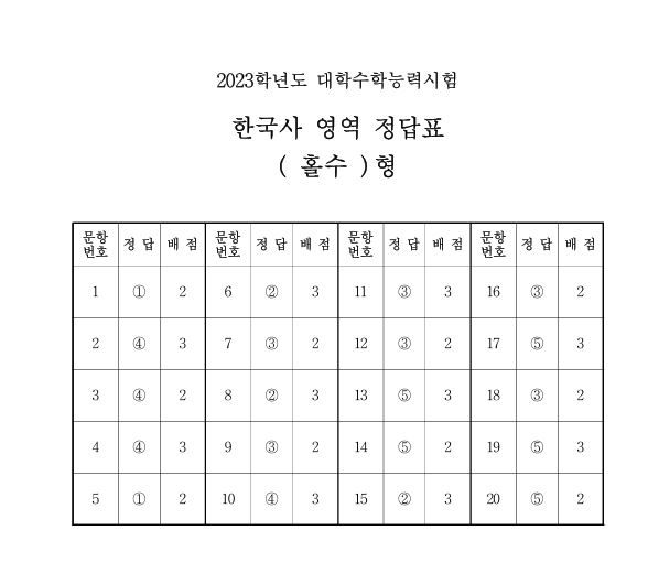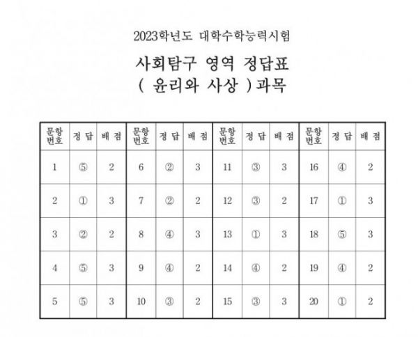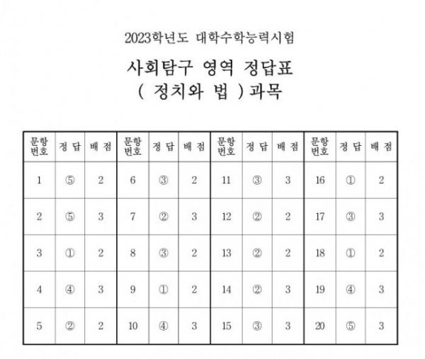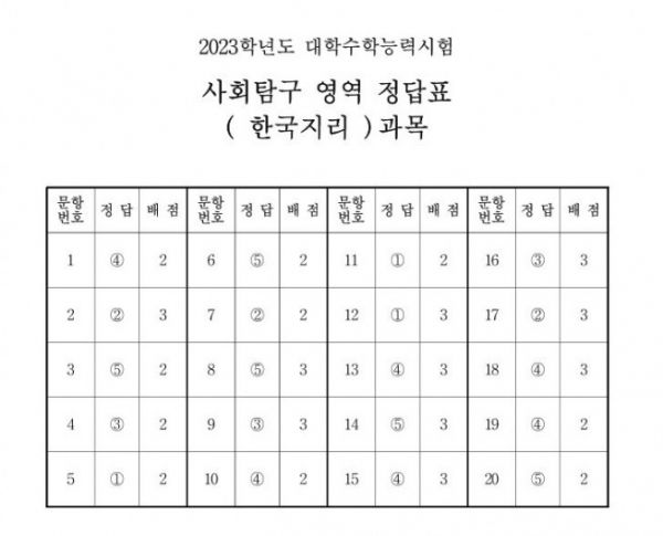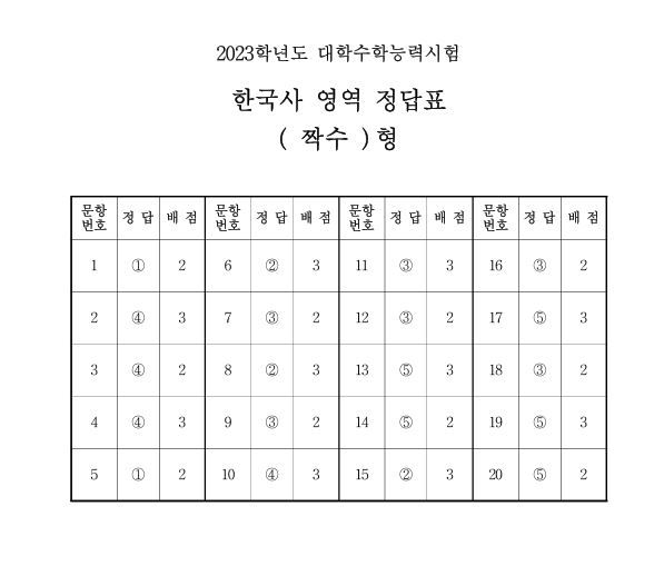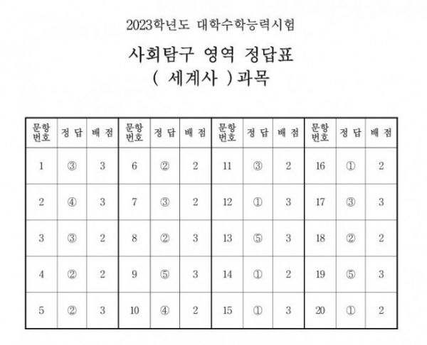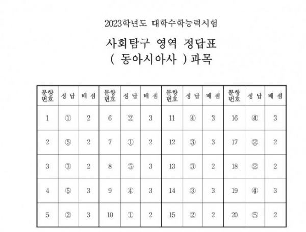2023학년도 대학수학능력시험(수능) 한국사, 탐구 영역 정답표가 공개됐다.