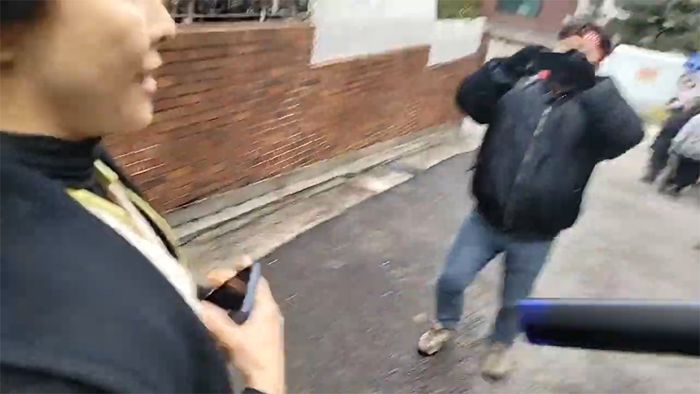 은마아파트 재건축 추진위원회 시위대가 서울 한남동 주택가에서 시위를 벌이다 항의하는 주민에게 카메라를 들이대며 사는 곳을 말하라고 다그치고 있다. 은마 재건축 추진위원회 유튜브 캡처.