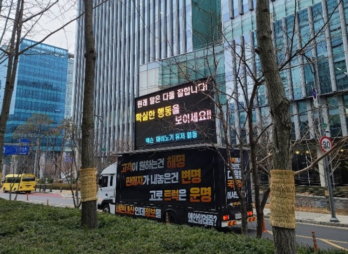 넥슨 마비노기 이용자가 확률형 아이템의 확률 공개를 요구하며 트럭시위를 하고 있다.ⓒ마비노기 커뮤니티