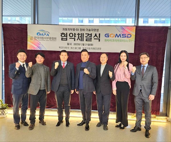 이날 화타이코리아모터스 양기웅 대표와 한국자동차부품협회 오병성 회장은 주요 관계자들이 함께 참석한 가운데 GOMSD 본사 전기자동차전시장에서 협약식을 진행하였다.