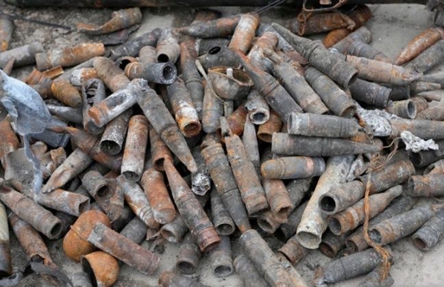 5일(현지시간) 우크라이나 키이우 외곽 부차 마을에 최근 전투의 흔적인 탄피들이 수북이 쌓여 있다. ⓒAP/뉴시스