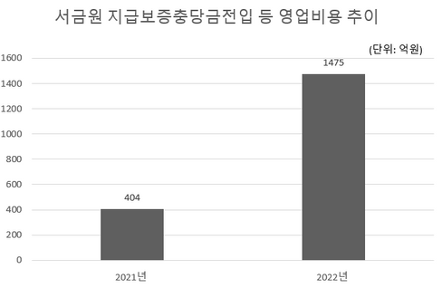 28일 서금원에 따르면 지난해 지급보증충당금 전입 등에 따른 영업비용은 1475억원으로 전년 대비 265.1%(1071억원) 늘었다.