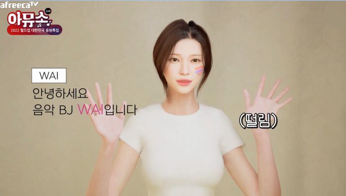 아프리카TV에서는 2D 애니메이션 캐릭터 형체로 구현되는 버추얼 BJ 외에도 언리얼 엔진 기반의 메타휴먼 리그 시스템을 사용하는 가상 인플루언서 육성에도 박차를 가하고 있다. 지난해 11월 디지털 싱글 음원 발매 뮤직비디오와 함께 처음 공개된 가상 인플루언서 ‘WAI(와이)’의 경우 기존의 버추얼 휴먼이 주로 선보인 딥페이크(특정 인물의 얼굴 등을 AI 기술을 이용해 합성한 편집물) 방식이 아닌 완전한 풀(full) 3D 모델이라는 점이 특징이다.