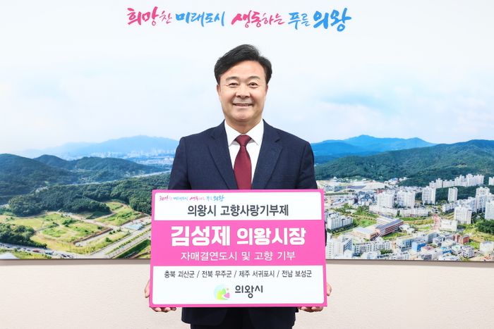 최근 자매도시인 충북 괴산군 송인헌 군수가 의왕시에 고향사랑기부금을 기탁했으며, 이에 화답해 이날 김성제 의왕시장도 기부금을 전달하며 지자체 간 상호 협력의 모습을 보였다.