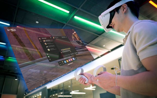 가상현실(VR) 디바이스(기기) ‘오큘러스퀘스트2’ 128기가바이트(GB) 모델을 체험하는 모습.(자료사진)ⓒSK텔레콤