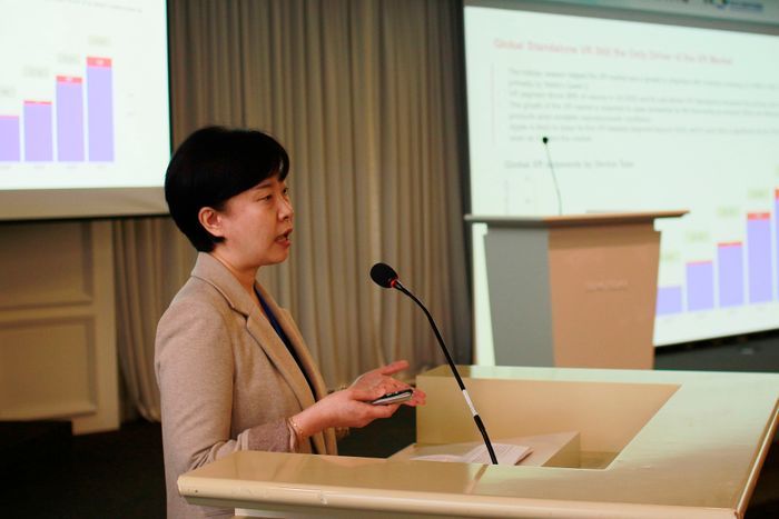 카운터포인트리서치의 임수정 애널리스트가 20일 열린 ‘XR 디스플레이 산업 전략 포럼’에서 '중국의 XR 산업 밸류체인 및 주요기업 동향'을 주제로 발표하고 있다.ⓒ한국디스플레이산업협회