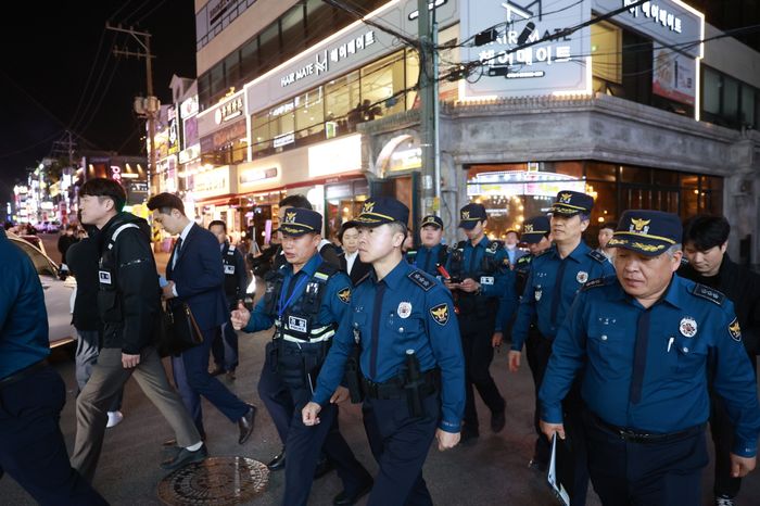 경기 경찰이 21일 밤 젊은 층이 몰리는 유흥가 일대를 돌며 급증하는 마약사범을 비롯한 범죄 예방을 위한 야간 합동 점검에 나섰다.