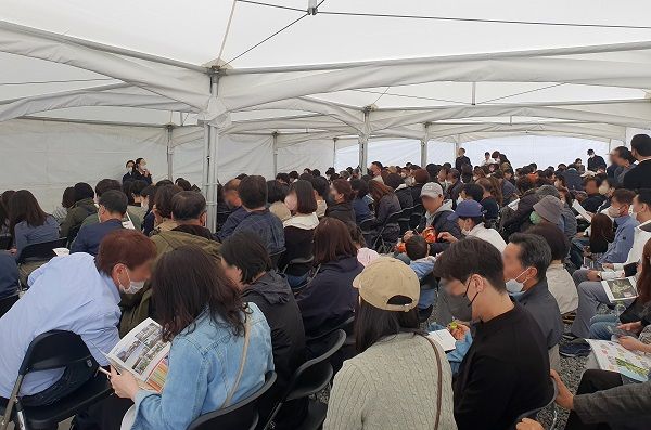 실제 23일 이른 아침부터 선착순 계약을 희망하는 매수 대기자들이 몰리며 길게 대기 줄이 형성됐으며, 잔여 물량을 계약하려는 수요자들로 하루 종일 분양 열기가 뜨거웠다.