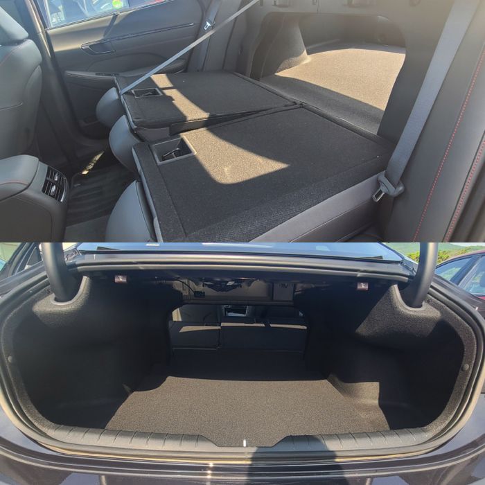 쏘나타 디 엣지 시트를 폴딩한 상태에서 찍은 트렁크와 뒷좌석. ⓒ정진주 기자