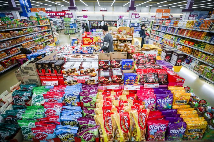 서울 서초구 하나로마트 양재점을 찾은 시민이 선물할 초콜릿 및 사탕 제품을 살펴보고 있다. ⓒ뉴시스