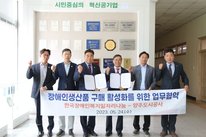 경기 양주시 양주도시공사(사장 이흥규)는 사회적 책임 실현을 위한 협업 체계 구축을 위해 지난 24일 한국장애인복지일자리나눔과 업무협약식을 가졌다고 25일 밝혔다.