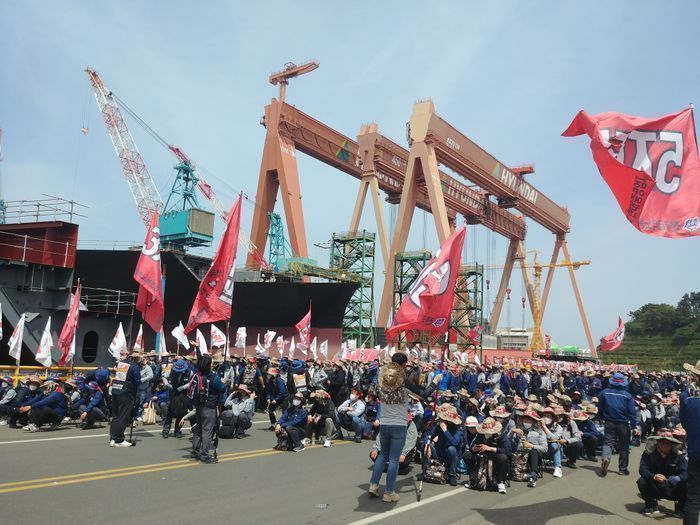 2022년 4월 27일 HD현대중공업 울산 본사에서 노조가 파업 집회를 열고 있다. ⓒ전국금속노동조합 현대중공업지부