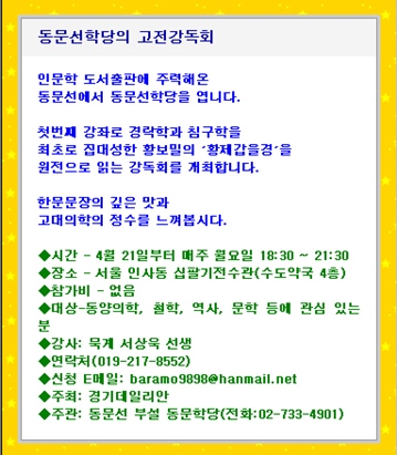 경기데일리안 팝업창 ´동문선학당´ 강좌 안내