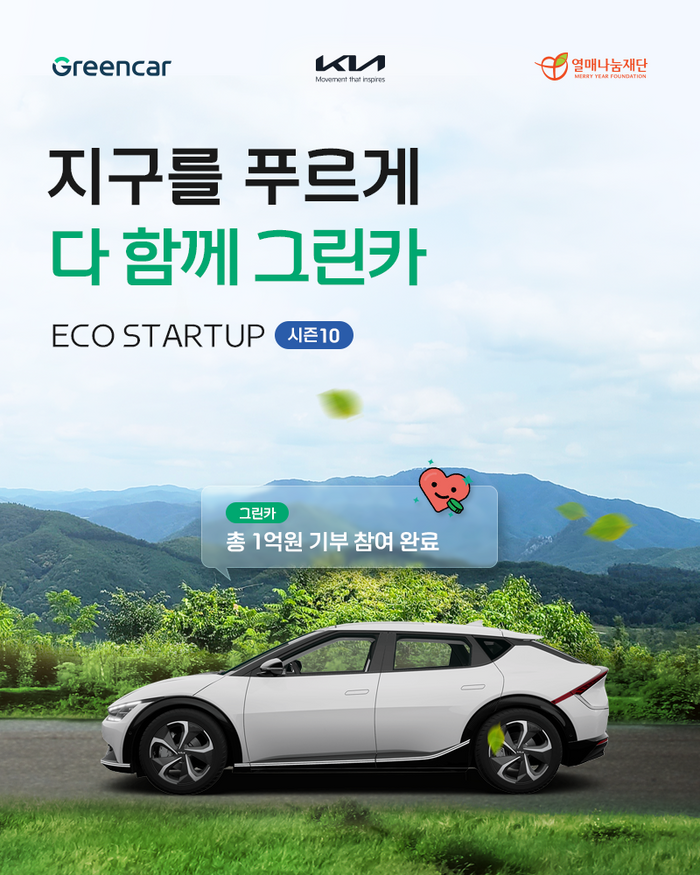 기아는 카셰어링 기업 그린카와 함께 친환경 분야 청년 창업가 지원을 위한 기부금 모금 캠페인 '지구를 푸르게 다 함께 그린카'를 오는 31일까지 실시한다고 1일 밝혔다.