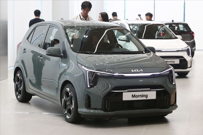 7월 4일 오전 인천 미추홀구 기아 인천플래그십스토어에서 열린 기아 '더 뉴 모닝' 포토 미디어데이 행사에서 기아 '더 뉴 모닝'이 전시돼 있다. ⓒ데일리안 홍금표 기자