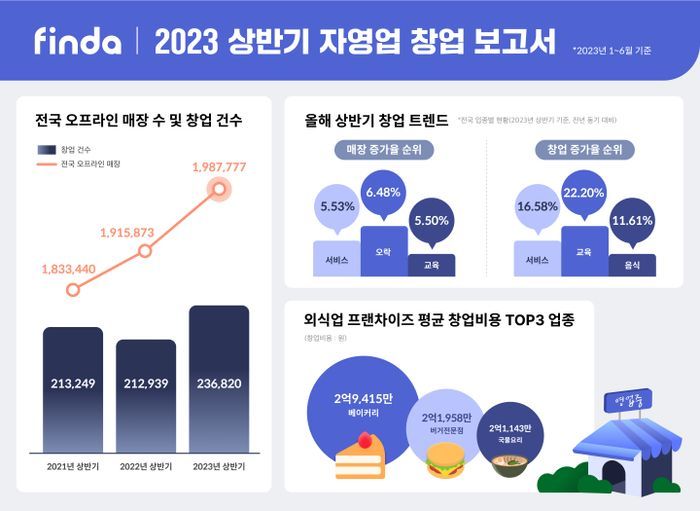대출 전문 빅데이터 핀테크 기업 핀다가 상권 분석 플랫폼 오픈업을 통해 올해 상반기 자영업 창업 보고서를 7일 공개했다.