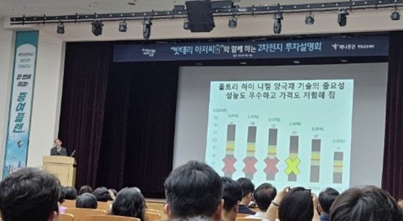 한편 이날 투자설명회에는 약 200여명의 고객이 참석하며 성황을 이뤘고 박 작가는 그동안 자신이 추천해 온 2차전지 8개 종목에 대한 매수 의견을 재차 밝혔다.
