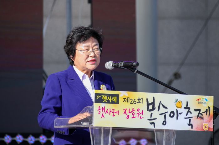 장호원복숭아축제에서 인사말을 하는 김경희 이천시장ⓒ이천시 제공