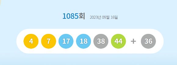 16일 동행복권은 1085회 로또 당첨번호가 '4·7·17·18·38·44'번이라고 밝혔다.