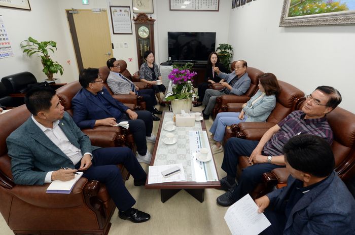 오산시의회와 지역 노인회를 방문해 의견청취를 위한 릴레이 간담회를 열고 있다ⓒ시의회 제공