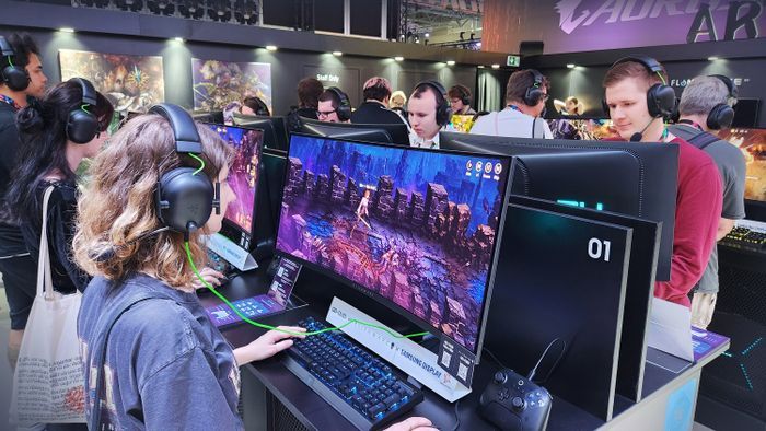 8월 23일부터 27일까지 독일 쾰른에서 열리는 '게임스컴 2023'에 참가한 게이머들이 QD-OLED 모니터로 '별이되어라2'를 즐기고 있는 모습.ⓒ삼성디스플레이