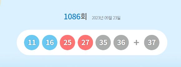 23일 동행복권은 1086회 로또 당첨번호가 '11·16·25·27·35·36'번이라고 밝혔다.